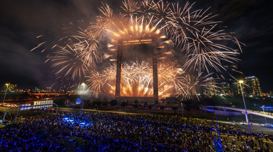 En Dubai, Emiratos Árabes Unidos, la gente pudo disfrutar de los fuegos artificiales desde el edificio más alto del mundo, el Burj Khalifa, en un espectáculo que combinó exhibiciones de luces, música y chorros de agua.